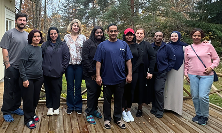 Bild på personalenMedarbetarna på Högsätersvägen 16B. Enhetschef Azai Alchasova (näst längst till vänster) tillsammans med biträdande enhetschef Kauthar Al Zubaidi, arbetsledare Ilhama Aligozalova, stödpedagog Forogh Far Farzaneh samt stödassistenterna Youssef Saado, Kamal Uddin, Anup Roy, Paula Guzman, Amanda Kadhir, Elisabeth Habte, Gifty Nyamesah och Aminata Conteh.
